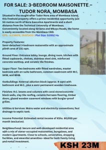 3 No. Bedroom Master Ensuite Maisonette In Fahari Estate Bamburi
